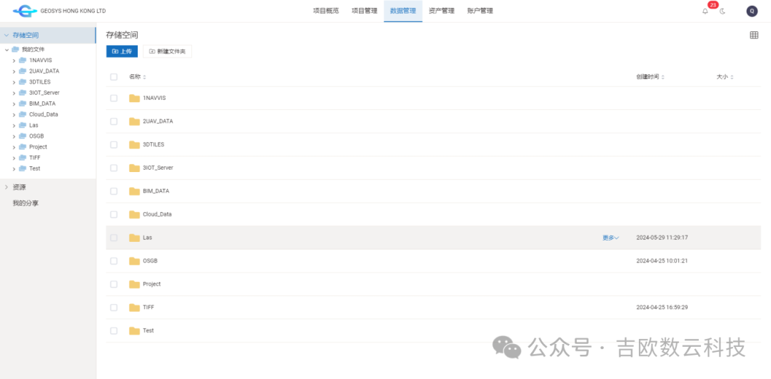 Geotwin Server资源管理模块支持多种常见的地理空间数据格式,支持以下数据类型发布到GeoTwin平台:照片、全景图像、点云、3D Tiles、OSGB、ESRI Shapefile、GeoTiff、Geojson、IFC、REVIT 和 CSV。
