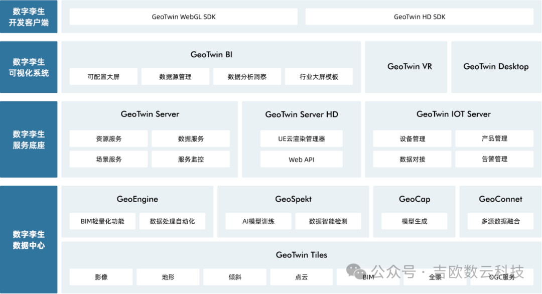让我们看看GeoTwin空间孪生计算平台如何完美融合GeoTwin Engine、Geotwin Server、Geotwin BI、Geotwin Capture等核心系列产品,提供专业的数字孪生服务。