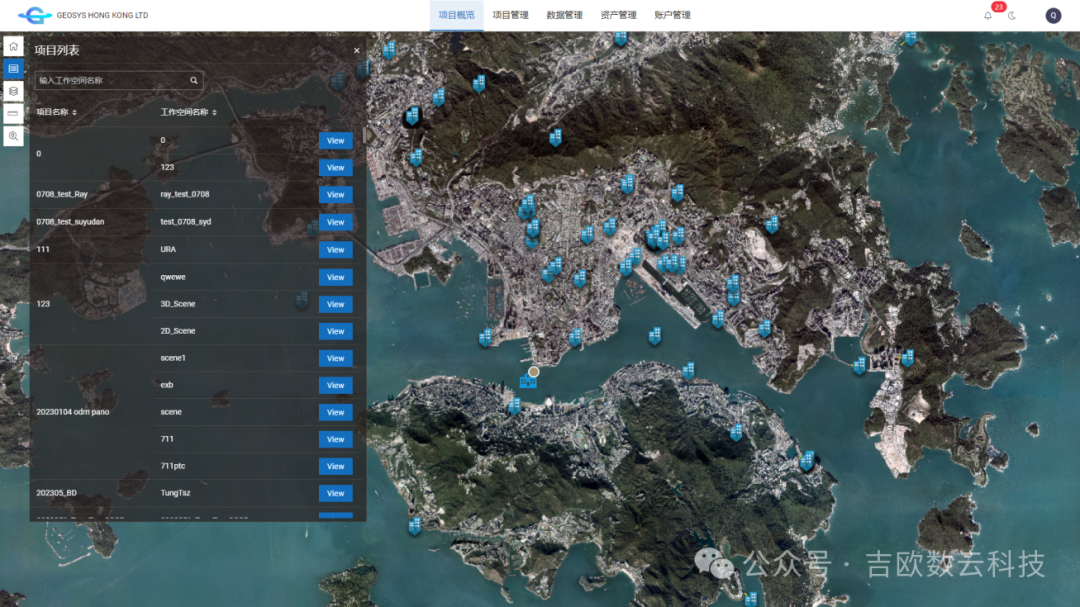 GeoTwin Server支持在项目中建立多个2D场景或者3D场景,根据需求创建不同的可共享和可编辑场景管理项目。